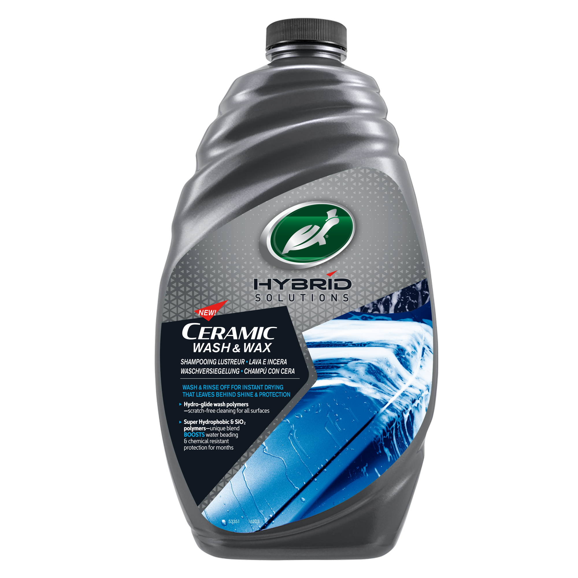 | Автошампунь з керамікою Turtle Wax HS Ceramic Wash-n-Wax відноситься до нової революційної лінійки продуктів Turtle Wax Hybrid Solutions. Цей шампунь є інноваційним продуктом, що виконує дві функції одночасно за концепцією одно-крокової обробки. Інноваційні активні мийні компоненти гарантують глибоке очищення усіх типів забруднень, що гарантує чистоту та відмінну адгезію (прилипання) різного типу восків до кузова після мийки. Безводні мийні полімери Hydro-Glide у складі, капсулюють частки бруду запобігаючи його контакту з кузовом автомобіля при мийці. Суміш природнього та синтетичних восків забезпечують неймовірний блиск та захист лакофарбового покриття. На остаток після мийки та витирання на поверхні автомобіля утворюється тонкий шар керамічної плівки діоксиду кремнію SiO2, що є надміцним та гідрофобним покриттям (так звана Кераміка). Завдяки своїй міцності керамічне покриття захищає кузов від УФ-променів (вицвітання) та хімічно агресивних забруднень (смол, нафтових плям). Гідрофобність керамічного покриття гарантує значно менше прилипання пороху, пилу, дощових брудних крапель тощо. Призначений для глибокого миття автомобіля ручним способом. Керамічні компоненти у складі не дають густу піну на відміну від традиційних шампунів. Переваги Автошампунь з керамікою Turtle Wax HS Ceramic Wash & Wax: • революційна лінійка продуктів Turtle Wax HS Hybrid Solutions – синтетичні полімери та керамічний захист; • однокроковий засіб – мийка та захист; • створює міцне керамічне гідрофобне покриття; Застосування Автошампунь з керамікою Turtle Wax HS Ceramic Wash & Wax: 1. Попередньо збийте великий сипучий бруд з поверхні автомобіля струменем води, починаючи з даху і рухаючись вниз. 2. Додайте 40…60 мл автошампуня (на 5-6л води) у відро і залийте потужним струменем води. 3. Занурте рукавицю з мікрофібри або губку Turtle Wax і почніть мити автомобіль зверху вниз. 4. Сполосніть автомобіль чистою водою. 5. За допомогою мікрофібри розполіруйте залишки шампуню, щоб отримати чисте глянсове покриття. Поради виробника: перед використанням добре струсіть флакон. Не використовуйте під прямими сонячними променями та на гарячій поверхні. Не використовуйте на пошкодженому лакофарбовому покритті. Після мийки та розполіровки не мочіть кузов протягом 1-2 годин для кращої полімеризації керамічного покриття. Зберігання та догляд: зберігайте продукт у межах від +0С до +40С градусів. Не допускайте зберігання під прямими сонячними променями або поблизу гарячих поверхонь. Не допускайте замерзання продукту. |