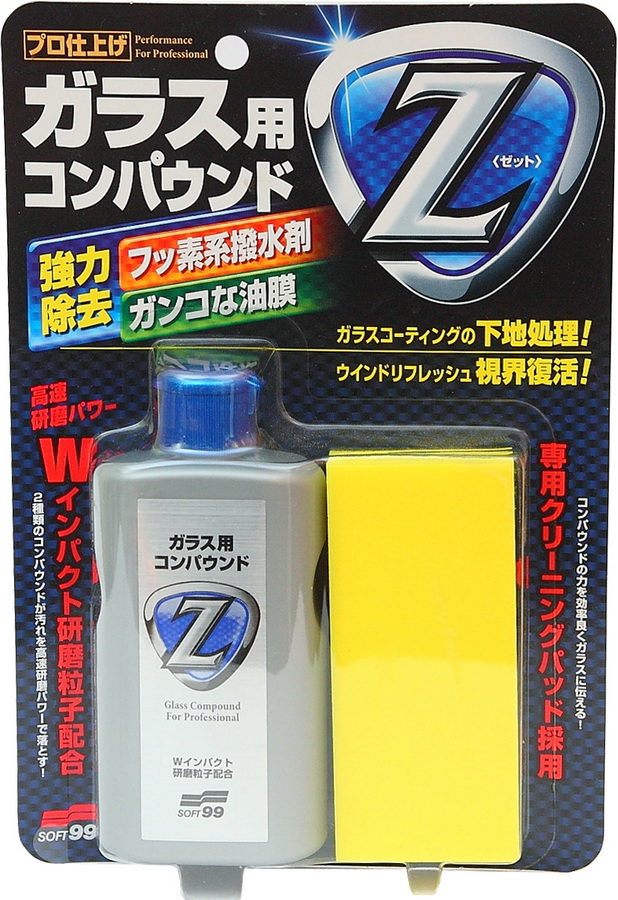 Glass Compound Z — абразивний очисник скляних поверхонь рідкого типу, застосовується для глибокого очищення скла від жирових відкладень, застарілих забруднень. Видаляє раніше нанесені засоби, з якими не впоралися спиртові очисники.
