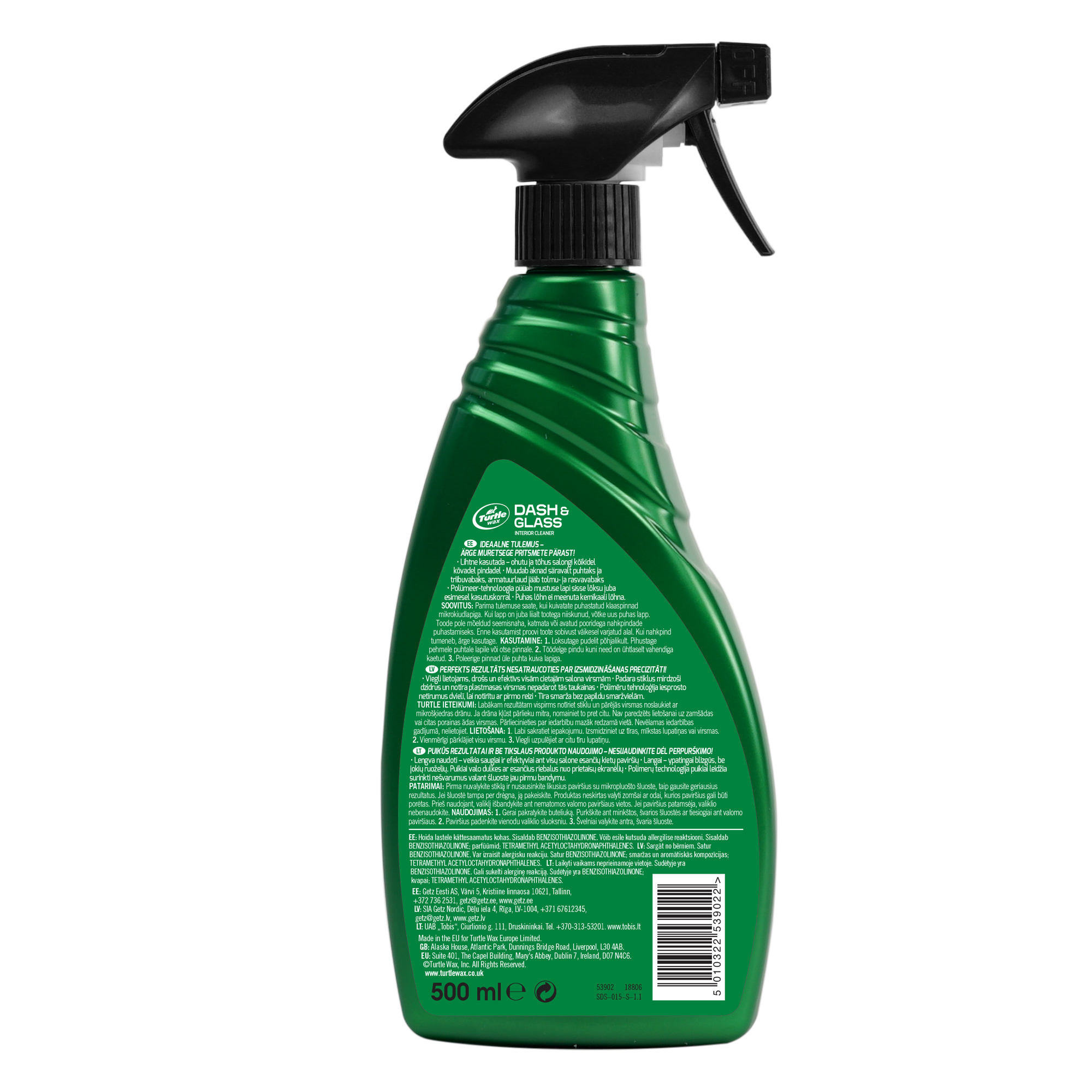 Поліроль для скла та пластику інтер’єру Turtle Wax Dash-n-Glass – це універсальний комбінований засіб для догляду за салоном авто. Призначений для чистки всіх внутрішніх поверхонь – скла, панелі приладів, екранів магнітол, карт дверей, різних елементів салону. Прибирає бруд, жирові плівки та розводи, пил та сліди різноманітного бруду. Не залишає після себе розводів та жирових воскових залишків. Після обробки захищає поверхню від УФ випромінення та надає антистатичних властивостей, що гарантує значно менше подальше осідання пилу та бруду. Розроблений за концепцією Turtle Wax QUICK & EASY – інноваційна рецептура у складі засобів для забезпечення максимального блиску, очистки та захисту за одне протирання. QUICK & EASY, це найкращий спосіб заощадити час і зусилля. Засіб відноситься до продуктів серії ClearVue з максимально очищеними компонентами, що не залишають розводів та плівки на склі.