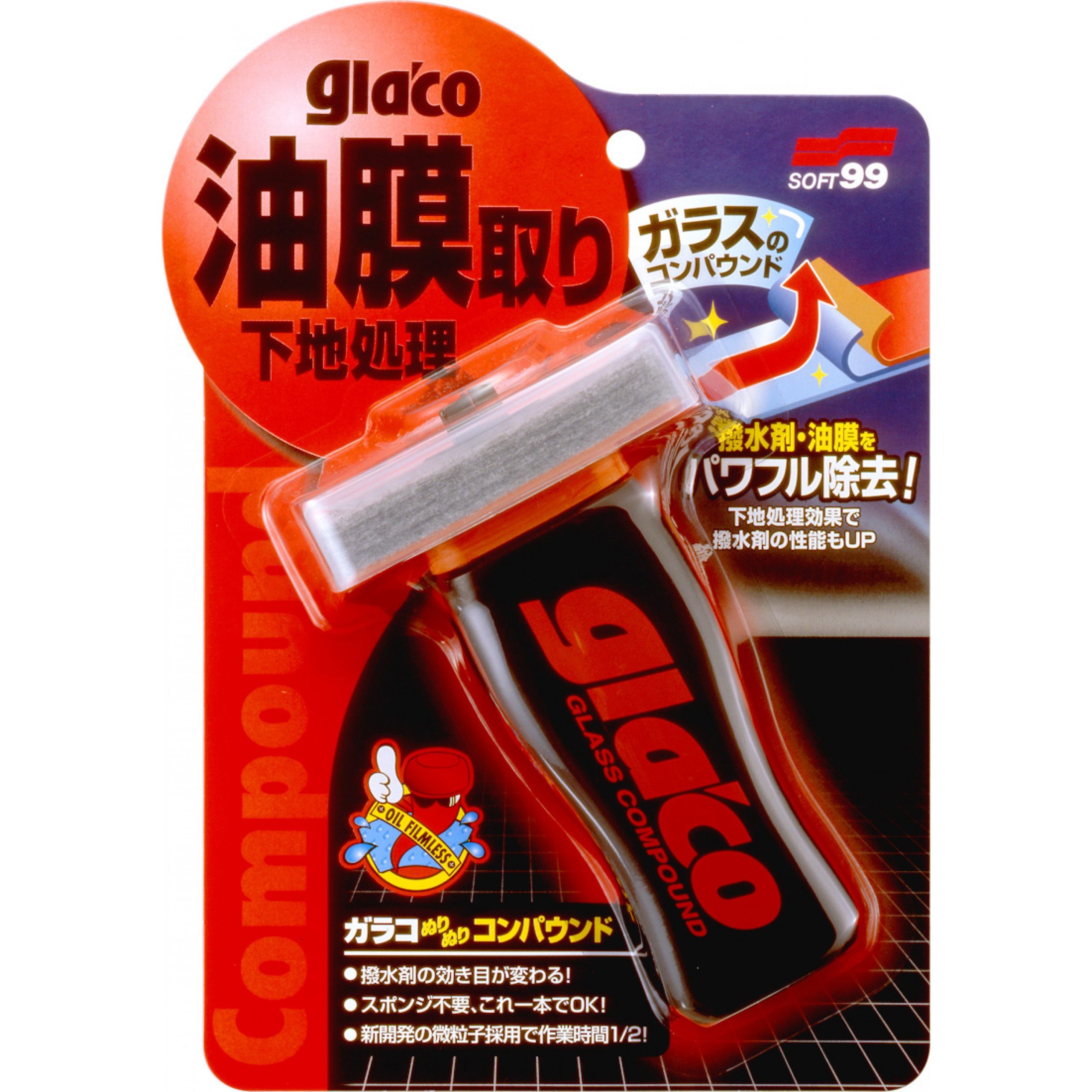 GLACO Glass Compound Roll On – абразивний очищувач рідкого типу для скла. Призначений для глибокого очищення скла від жирових відкладень, залишків комах, деревної смоли і забруднень, що в’їлися. Глибоко очищає скло автомобіля забезпечуючи кристальну прозорість. Видаляє раніше нанесені засоби, з якими не можуть впоратися спиртові очищувачі. Шліфує легкі пошкодження скла, усуває шорсткості та нерівності продовжуючи термін служби склоочисників.