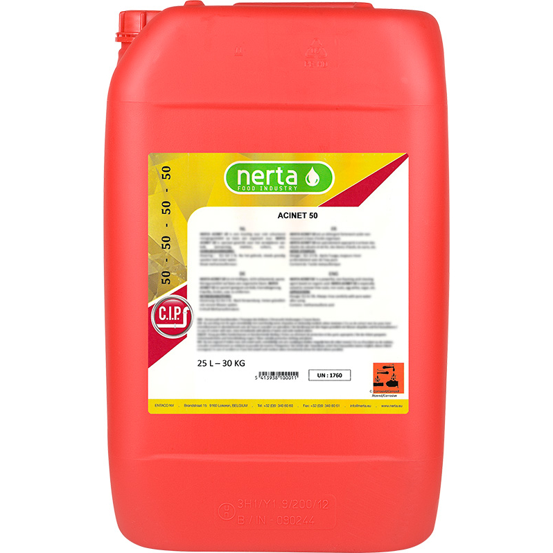 NERTA ACINET 50 – кислотний очищувач на основі фосфорної кислоти. Цей продукт є оптимальним для видалення накипу та очищення обладнання та труб. Суперконценрований Економічний Потужна формула Підходить як для холодної, так і для гарячої води Фасування: 5л, 25л (ціна вказана за літр)